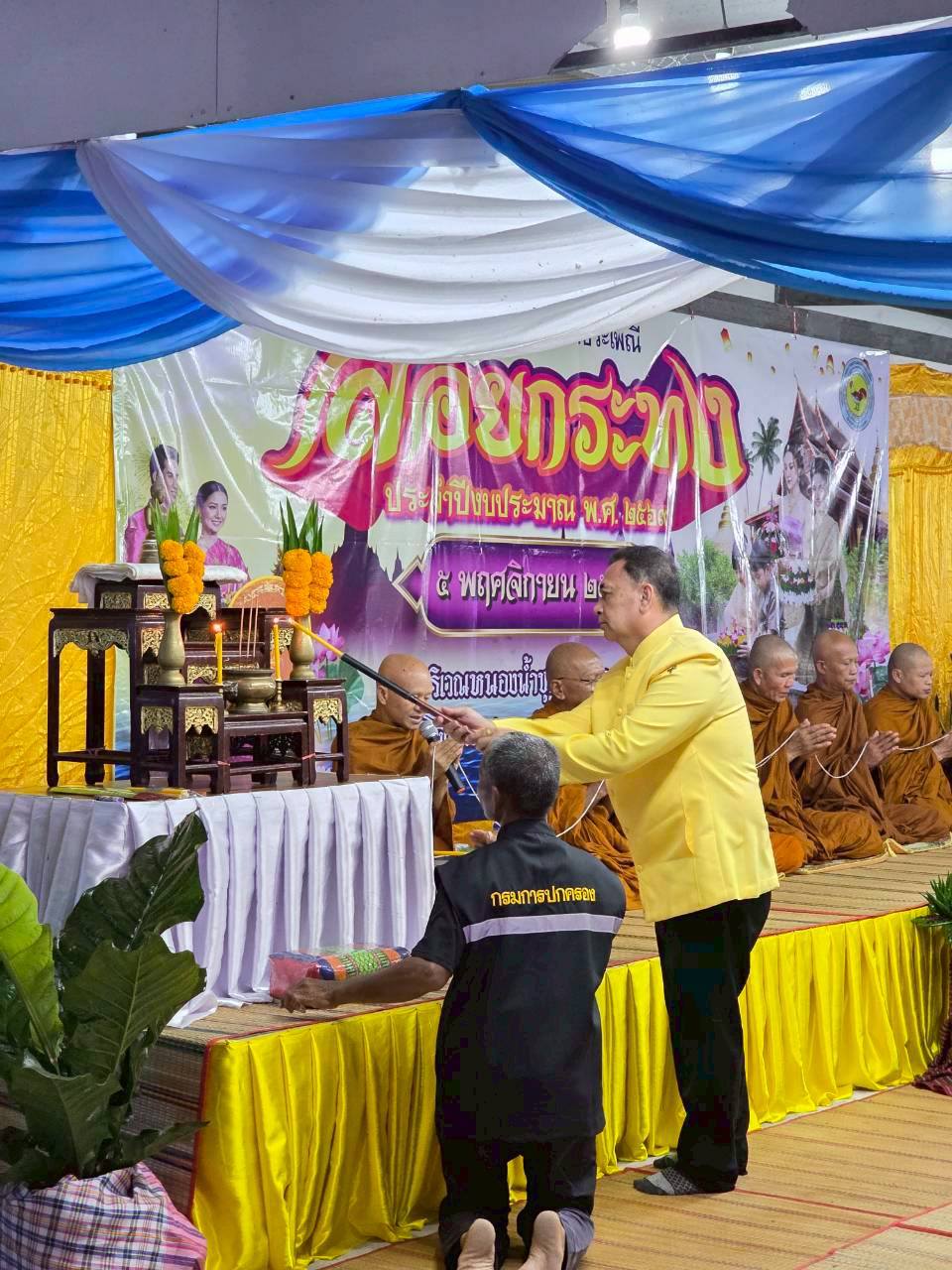 วันพุธ, 05 พฤศจิกายน 2568 11:50วันที่ 5 พฤศจิกายน 2568 เทศบาลตำบลห้วยทับทัน โดย นายชัยยันต์ เทพเกษตรกุล นายกเทศมนตรีตำบลห้วยทับทัน คณะผู้บริหาร สมาชิกสภาเทศบาล หัวหน้าส่วนราชการ ผู้บริหารสถานศึกษา ครูเทศบาล บุคลากรเทศบาล และผู้นำชุมชน พี่น้องประชาชนชาวเทศบาลตำบลห้วยทับทัน ได้จัดงานสืบสานประเพณีลอยกระทง ประจำปี 2568 ณ หนองน้ำชุมชนหนองสิมใหญ่ โดยมีวัตถุประสงค์ เพื่อสืบสานประเพณีดั้งเดิมของไทย และขอขมาพระแม่คงคา ภายใต้แนวคิด ลอยกระทงวิถีไทย ปลอดภัย ใส่ใจสิ่งแวดล้อม.