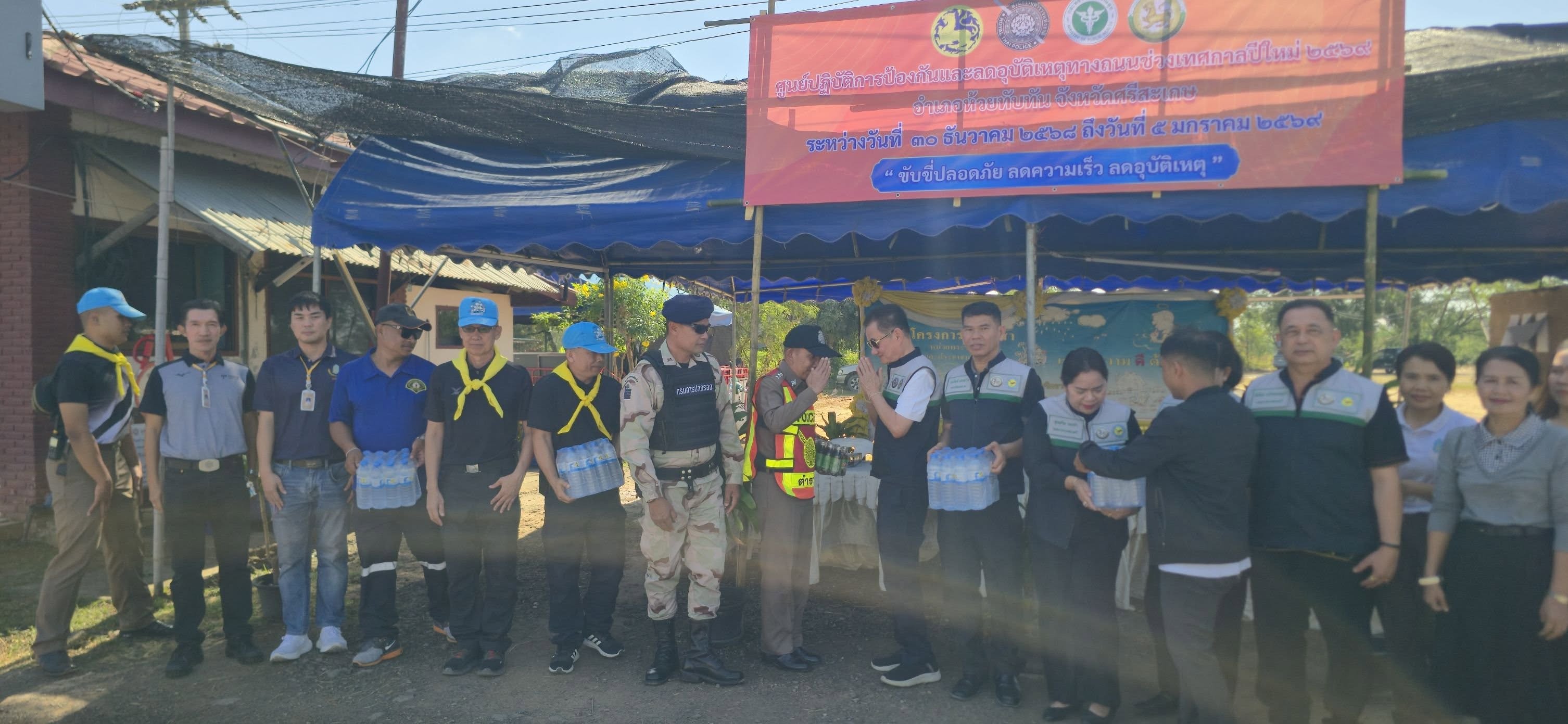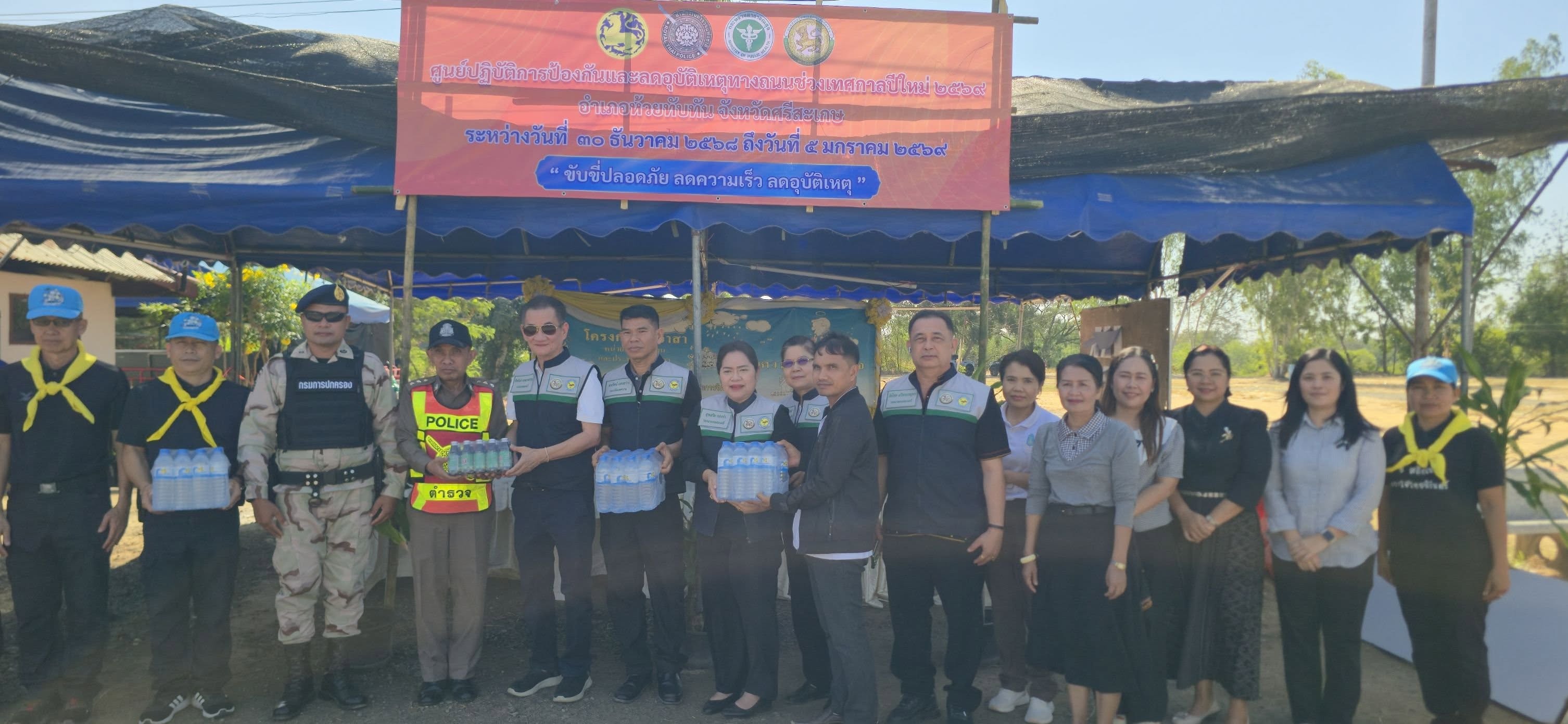 วันจันทร์, 29 ธันวาคม 2568 14:24วันที่ 30 ธันวาคม 2568 เวลา 11.00 น. นายชัยยันต์ เทพเกษตรกุล นายกเทศมนตรีตำบลห้วยทับทัน พร้อมด้วยนายอัถไชย ตรีชนะสมุทร นางสุขเสริม กองทำ รองนายกเทศมนตรี นางสาวบุษบัน วรรณรักษ์ เลขานุการนายกเทศมนตรี และหัวหน้าส่วนราชการ เจ้าหน้าที่เทศบาลตำบลห้วยทับทัน ออกตรวจเยี่ยมด่านชุมชน ป้องกันและลดอุบัติเหตุทางถนนช่วงเทศกาลปีใหม่ .
