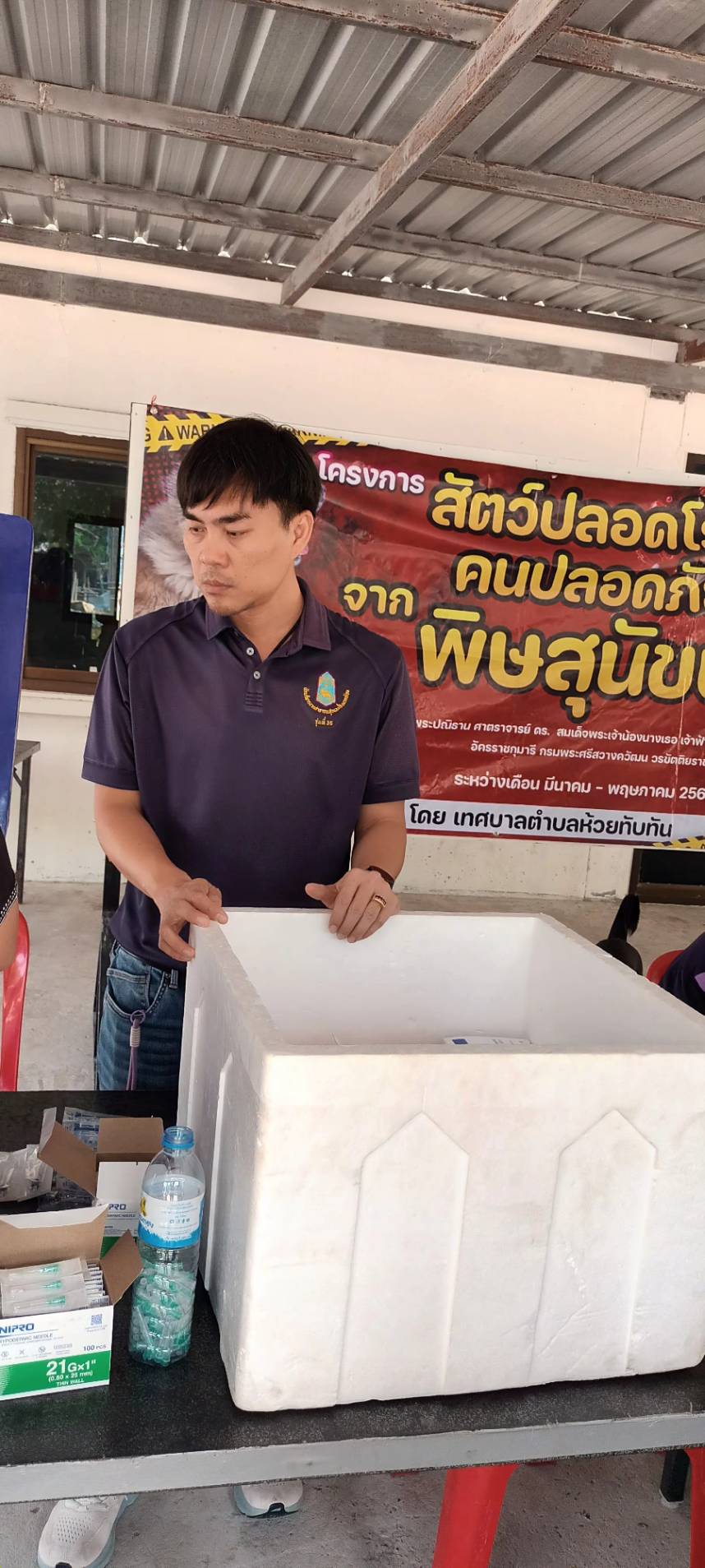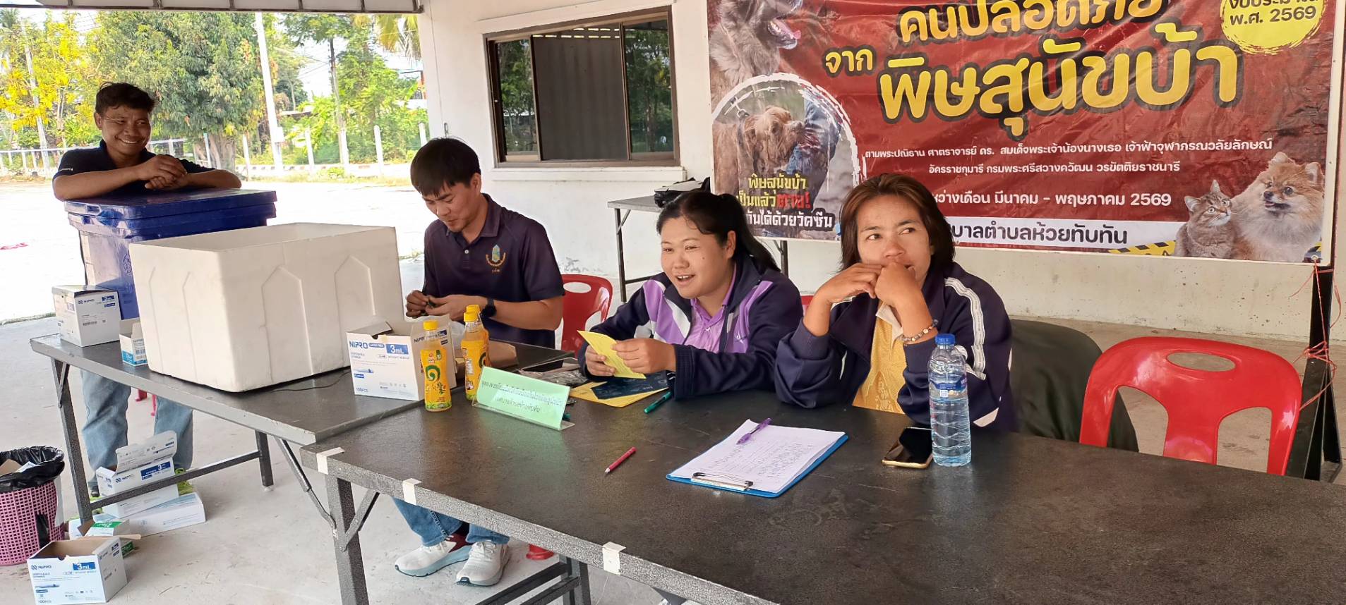 วันที่ 27 มีนาคม 2569 กองสาธารณสุขและสิ่งแวดล้อม เทศบาลตำบลห้วยทับทัน ออกรณรงค์ฉีดวัคซีนป้องกันโรคพิษสุนัขบ้าชุมชนในเขตเทศบาล ตามโครงการสัตว์ปลอดโรค คนปลอดภัย จากพิษสุนัขบ้า ในเขต ชุมชนหนองสิมใหญ่ และชุมชนฝั่งธน ประชาชนให้ความสนใจนำสุนัขและแมว