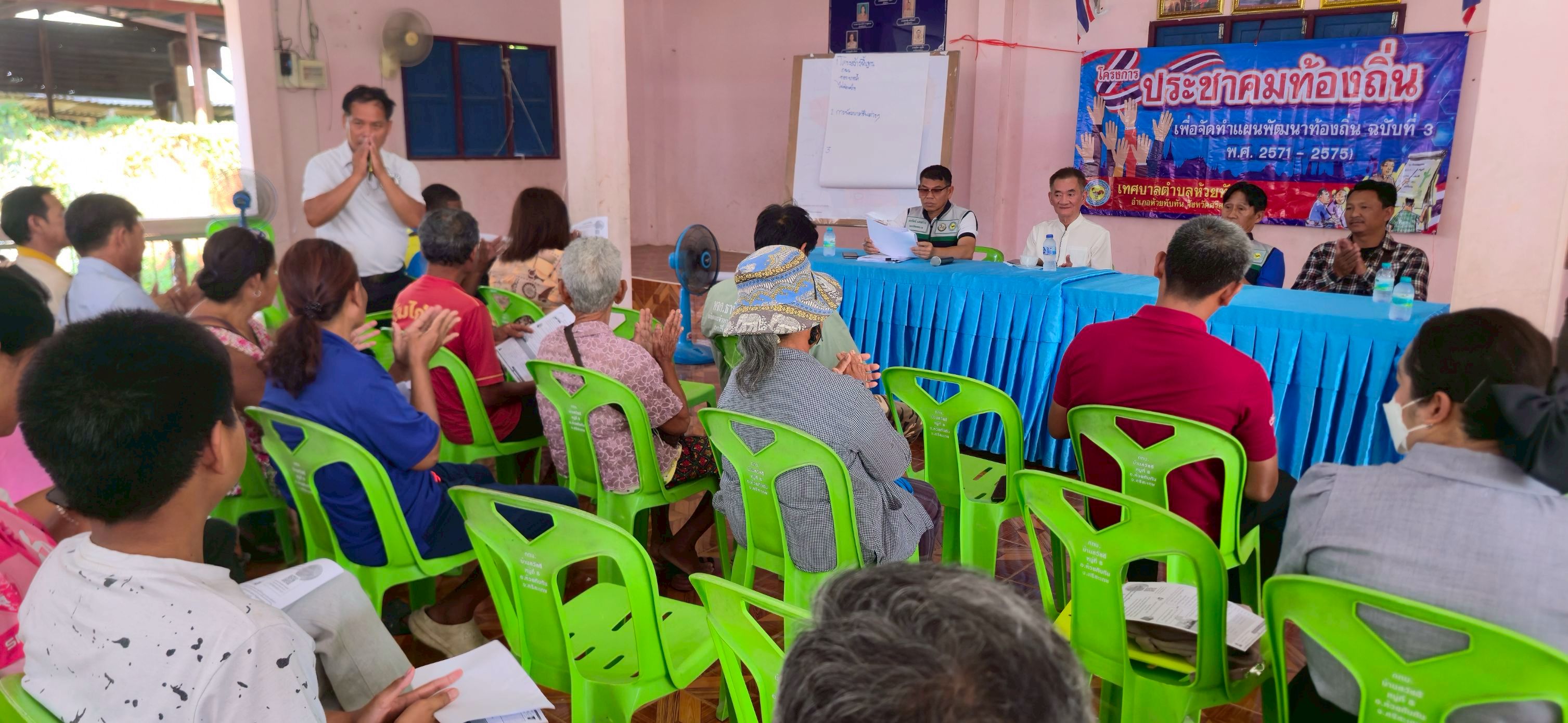 วันอังคาร, 31 มีนาคม 2569 15:24วันที่ 1 เมษายน 2569 เวลา 10.00 น. เทศบาลตำบลห้วยทับทัน ได้จัดโครงการประชาคมท้องถิ่นเพื่อจัดทำแผนพัฒนาท้องถิ่น ฉบับที่ 3 (พ.ศ.2571-2575) ซึ่งเป็นโครงการที่จัดขึ้นเพื่อระดมความคิดเห็น รับทราบปัญหา ความต้องการของประชาชนในพื้นที่อย่างแท้จริง ซึ่งผู้เข้าร่วมประชาคม ประกอบด้วย คณะผู้บริหาร สมาชิกสภาเทศบาล กำนัน ผู้ใหญ่บ้าน ผู้นำชุมชน และกรรมการชุมชน เข้าร่วมเสนอแนะ รับฟัง และร่วมแสดงความคิดเห็น ปัญหา/ความต้องการ ของชุมชน ณ ชุมชุนสวัสดี .